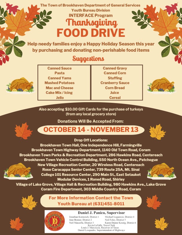 Lake Grove Hosting Thanksgiving Food Drive in Partnership with Town of Brookhaven